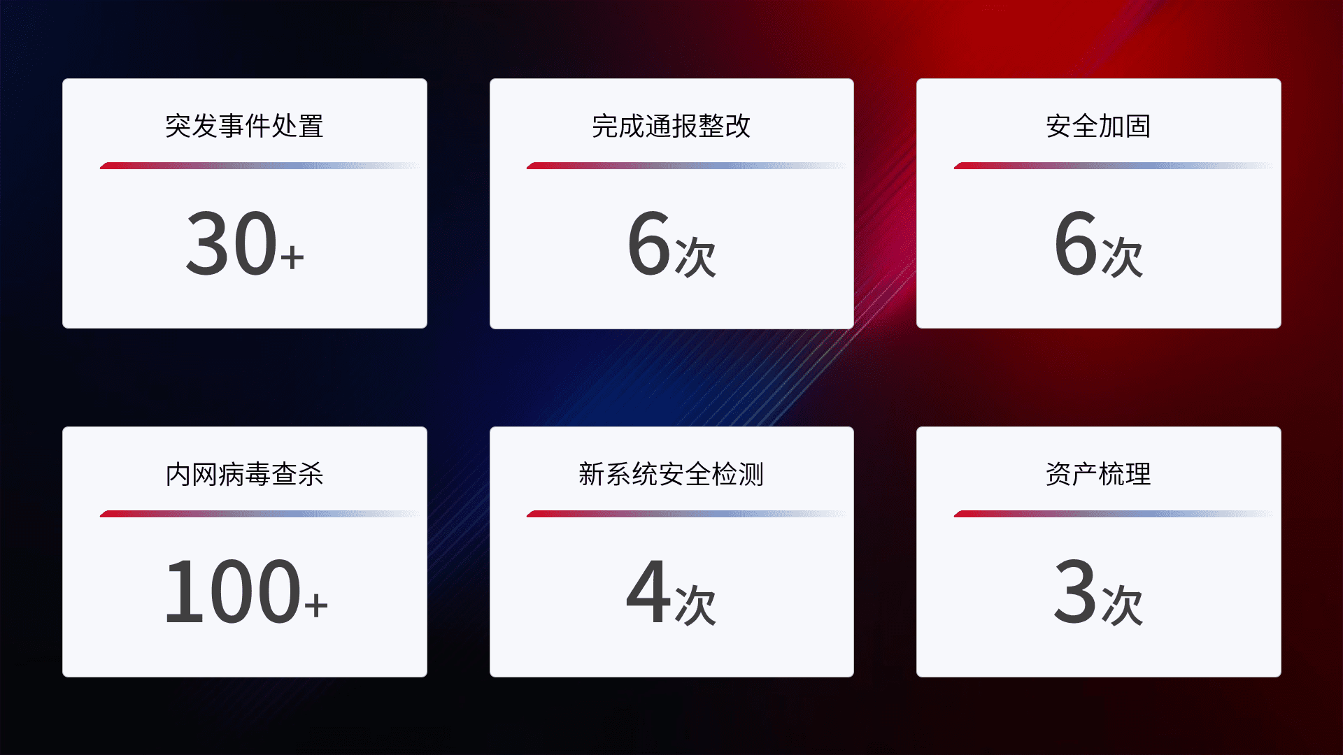 根据客户需求定制整改方案,,,,强化应急演练,,提升网络安全事件应对能力。。